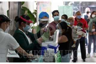 CIUDAD DE MÉXICO, 09OCTUBRE2020.- Comenzó la Campaña Nacional de Vacunación contra la Influenza en las clínicas del Instituto Mexicano del Seguro Social (IMSS). La dosis esta destinada al grupo blanco (adultos mayores, infantes y personas con enfermedades crónicas). Se espera un segundo arribo de 400 mil dosis que serán distribuidas en centros de salud y kioscos Covid-19. La autoridades han llamado a acudir a vacunarse con el fin de evitar la confusión entre los casos de influenza y Covid-19. FOTO: GALO CAÑAS/CUARTOSCURO.COM