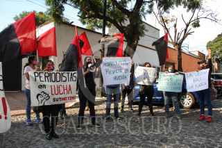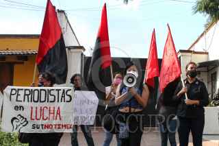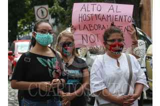 CIUDAD DE MÉXICO, 09OCTUBRE2020.- Trabajadores de Notimex se manifestaron a las afueras de las oficinas alternas de la agencia, los inconformes exigen que la directora Sanjuana Martínez, detenga el hostigamiento a todos los trabajadores y pare la violación a la huelga la cual cumple 232 días. FOTO: ROGELIO MORALES /CUARTOSCURO.COM
