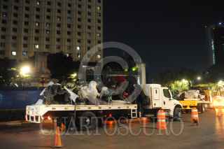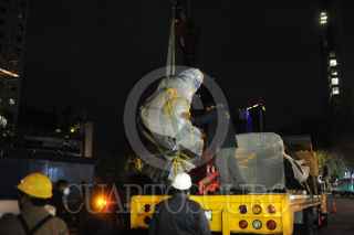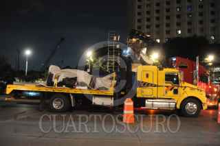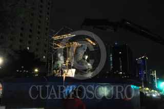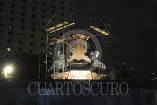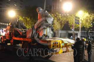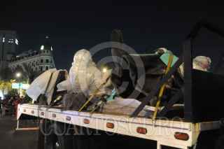 Ciudad de México, 10 octubre 2020. Esta madrugada personal del INAH retiró el monumento a Colon y los cuatro Frailes que lo resguardaban, de su pedestal para darles mantenimiento. No hay fecha para su reinstalación. Foto: Luis Carbayo/cuartoscuro.com