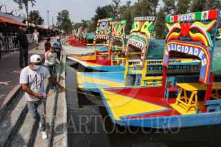 CIUDAD DE MÉXICO, 10OCTUBRE2020.- Debido a la baja afluencia de visitantes al canal de Xochimilco, trabajadores de trajineras han puesto en marcha promociones en viajes de trajinera, bajando el costo de 500 pesos la hora a 350, esto con el objetivo de atraer a turistas. FOTO: ROGELIO MORALES /CUARTOSCURO.COM