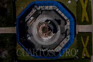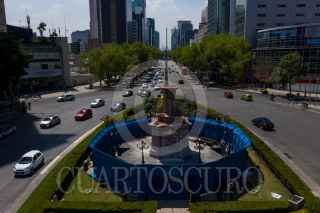 CIUDAD DE MÉXICO, 10OCTUBRE2020.- Esta madrugada fue retirada la estatua de Cristóbal Colón, así como los cuatro frailes que se encontraban sobre Paseo de la Reforma. El Instituto Nacional de Antropología e Historia (INAH) se ocupara de los trabajos de restauración para las esculturas, que habían sido intervenidas en diversas manifestaciones sociales. FOTO: GALO CAÑAS /CUARTOSCURO.COM