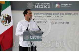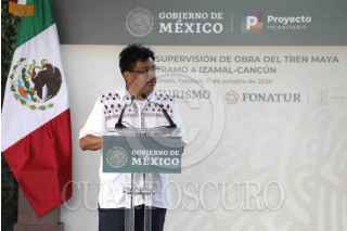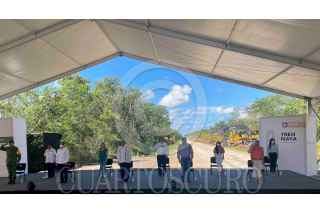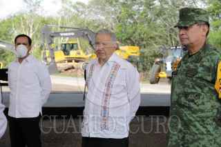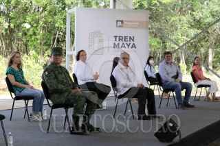 TINUM, YUCATÁN, 11OCTUBRE2020.- Andrés Manuel López Obrador, Presidente de México, encabezó la Supervisión de obra del Tren Maya "Tramo 4 Izamal-Cancún". Acompañaron al mandatario: Luis Cresencio Sandoval González, secretario de la Defensa Nacional; Adelfo Regino Montes, Director General del Instituto Nacional de los Pueblos Indígenas; María Luisa Albores González, secretaria de Semarnat, Rogelio Jiménez Pons Director de FONATUR y Mauricio Vila, Gobernador de Yucatán. FOTO: PRESIDENCIA/CUARTOSCURO.COM