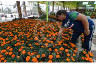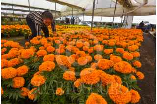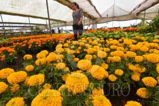 ATLACOMULCO, ESTADO DE MÉXICO, 12OCTUBRE2020.- Productores de plantas en invernaderos de San Lorenzo Tlacotepec en Atlacomulco temen que la flor de cempasúchil se les quede ante el anuncio por parte de autoridades locales y estatales de no abrir los panteones para la celebración de Día de Muertos el próximo 1 y 2 de noviembre ante la contingencia por COVID-19, no todos los viveros tienen a la venta la flor algunos prefirieron no arriesgarse, la maceta va de los 10 pesos en adelante. FOTO: CRISANTA ESPINOSA AGUILAR /CUARTOSCURO.COM