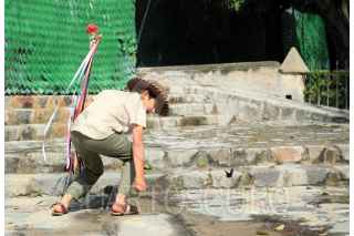 CUERNAVACA, MORELOS,12OCTUBRE2020.- Un niño con un sombrero y un bastón intenta atrapar una mariposa de colores fantásticos en el atrio de la Catedral de la capital de Morelos. FOTO: MARGARITO PÉREZ RETANA /CUARTOSCURO.COM