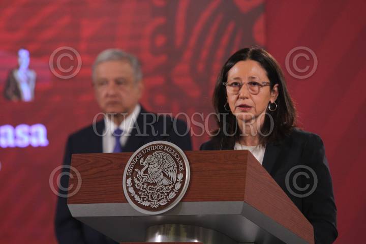 CIUDAD DE MÉXICO, 10OCTUBRE2020. - Andrés Manuel López Obrador, presidente de México acompañado de Jorge Alcocer Varela, secretario de Salud; Marcelo Ebrard, secretario de Relaciones Exteriores; Arturo Herrera Gutierrez, secretario de Hacienda y Crédito Público; Hugo López Gatell Ramírez, subsecretario de Protección y Promoción de la Salud; Martha Delgado, subsecretaria para Asuntos Multilaterales y Derechos Humanos; Sylvia Varela, presidenta y directora general de AstraZeneca México; Lizete de la Torre, directora de Asuntos Corporativos y Health & Value de Pfizer México y Yu Xuefeng, director ejecutivo de CanSino Biologics (conectado vía remota) durante la conferencia matutina en Palacio Nacional. FOTO: ANDREA MURCIA /CUARTOSCURO. COM