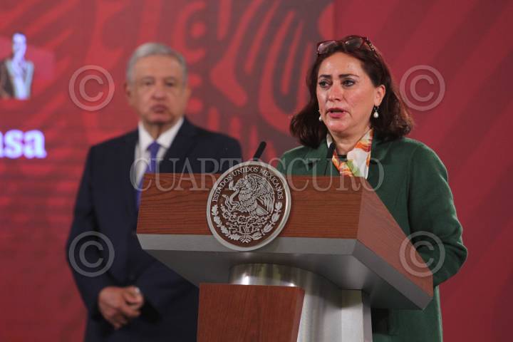 CIUDAD DE MÉXICO, 10OCTUBRE2020. - Andrés Manuel López Obrador, presidente de México acompañado de Jorge Alcocer Varela, secretario de Salud; Marcelo Ebrard, secretario de Relaciones Exteriores; Arturo Herrera Gutierrez, secretario de Hacienda y Crédito Público; Hugo López Gatell Ramírez, subsecretario de Protección y Promoción de la Salud; Martha Delgado, subsecretaria para Asuntos Multilaterales y Derechos Humanos; Sylvia Varela, presidenta y directora general de AstraZeneca México; Lizete de la Torre, directora de Asuntos Corporativos y Health & Value de Pfizer México y Yu Xuefeng, director ejecutivo de CanSino Biologics (conectado vía remota) durante la conferencia matutina en Palacio Nacional. FOTO: ANDREA MURCIA /CUARTOSCURO. COM