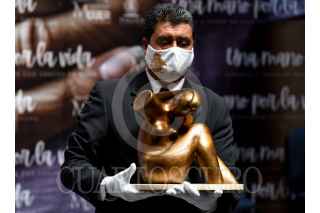 TOLUCA, ESTADO DE MÉXICO, 13OCTUBRE2020.- En el marco del Día Mundial de la Lucha contra el Cáncer de Mamá se realizó la subasta de Arte “Una Mano por la Vida”, organizada por el Instituto Municipal de la Mujer y la Asociación Teterías A. C., con el objetivo de recaudar fondos para otorgar prótesis externas de mamas a mujeres toluqueñas. FOTO: CRISANTA ESPINOSA AGUILAR /CUARTOSCURO.COM