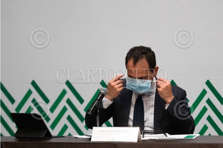 CIUDAD DE MÉXICO, 14OCTUBRE2020.- Claudia Sheinbaum Pardo, Jefa de Gobierno; Arturo Herrera, secretario de Hacienda y Crédito Público; Luz Elena González Escobar, secretaria de Administración y Finanzas, y Eduardo Ramírez Leal, presidente de la Cámara Mexicana de la Industria de la Construcción (CMIC), durante la presentación del programa "Reactivación Económica para el Bienestar de la Ciudad de México. Convenio con la Sociedad Hipotecaria Federal", en el Antiguo Palacio del Ayuntamiento. FOTO: MOISÉS PABLO/CUARTOSCURO.COM