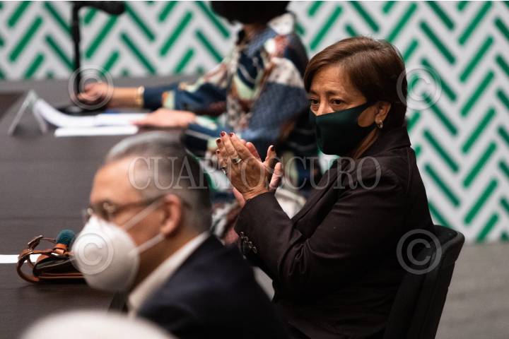 CIUDAD DE MÉXICO, 14OCTUBRE2020.- Claudia Sheinbaum Pardo, Jefa de Gobierno; Arturo Herrera, secretario de Hacienda y Crédito Público; Luz Elena González Escobar, secretaria de Administración y Finanzas, y Eduardo Ramírez Leal, presidente de la Cámara Mexicana de la Industria de la Construcción (CMIC), durante la presentación del programa "Reactivación Económica para el Bienestar de la Ciudad de México. Convenio con la Sociedad Hipotecaria Federal", en el Antiguo Palacio del Ayuntamiento. FOTO: MOISÉS PABLO/CUARTOSCURO.COM
