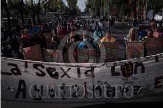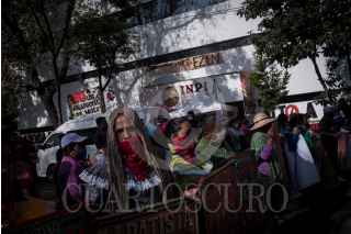 CIUDAD DE MÉXICO, 14OCTUBRE2020.- Hombres y mujeres que integran la Comunidad Indígena Otomí, residentes en la Ciudad de México, otros tantos provenientes de Santiago Mexquititán, Amealco, Querétaro, y representantes de diversas organizaciones sociales, se manifestaron bloqueando las avenidas México Coyoacán a la altura de las instalaciones de INPI, así como también el Eje 8, esto en protesta por el silencio que, aseguran, instrumenta el Gobierno Federal y, en particular, Adelfo Regino, titular del INPI, como respuesta a sus demandas y peticiones para resolver las problemáticas que viven tanto al interior de sus comunidades de origen como en la capital del país. Durante el acto de protesta se hizo énfasis en el apoyo a las comunidades indígenas zapatistas y a su ejército, el EZLN, quienes han denunciado ataques a manos de grupos paramilitares en sus comunidades. Los otomíes tomaron las instalaciones del Instituto Nacional de los Pueblos Indígenas el pasado 12 de Octubre en el marco de la "Jornada Nacional de Movilización en Defensa de la Madre Tierra". FOTO: PEDRO ANZA /CUARTOSCURO.COM qienes tomaron las instalaciones del Instituto Nacional de los Pueblos Indígenas el pasado 12 de Octube en el marco de la "Jornada Nacional de Movilización en Defensa de la Madre Tierra", bloquearon las avenidas México Coyoacán y el eje 8, esto en denuncia por la omisión por parte de las autoridades competentes en la resolución de las problemáticas