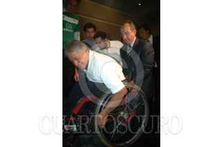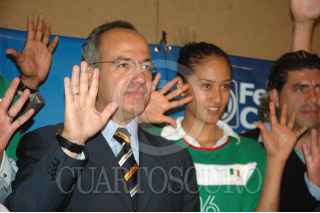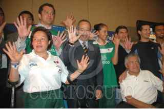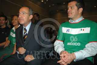 MÉXICO, D.F. 29MAYO2006.- Felipe Calderón Hinojosa, candidato del PAN a la presidencia de la república, se reunió con atletas que han destacado en sus actividades, para presentar la próxima etapa de la campaña que contará con spots publicitarios de la selección mexicana de futbol apoyando al candidato del PAN. FOTO: Iván Stephens/CUARTOSCURO.COM