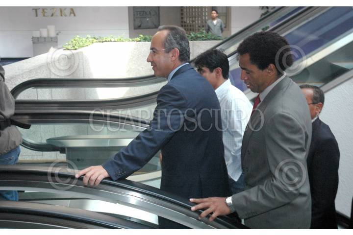 MÉXICO, D.F. 29MAYO2006.- Felipe Calderón Hinojosa, candidato del PAN a la presidencia de la república, se reunió con atletas que han destacado en sus actividades, para presentar la próxima etapa de la campaña que contará con spots publicitarios de la selección mexicana de futbol apoyando al candidato del PAN. FOTO: Iván Stephens/CUARTOSCURO.COM