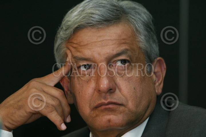 MEXICO, D.F., 29MAYO2006.- Andrés Manuel López Obrador, candidato a la presidencia de la República por la coalición por el Bien de Todos, se reunió con cientifícos e intelectuales para escuchar sus propuestas en materia de cultura, en el Centro Libánes. En la imagen el candidaro perredista saluda a un transeunte. FOTO: Moisés Pablo/CUARTOSCURO.COM