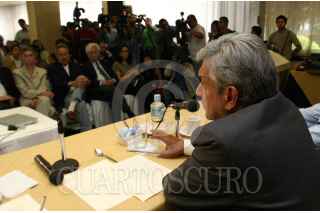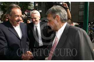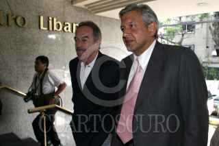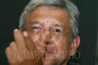 MEXICO, D.F., 29MAYO2006.- Andrés Manuel López Obrador, candidato a la presidencia de la República por la coalición por el Bien de Todos, se reunió con cientifícos e intelectuales para escuchar sus propuestas en materia de cultura, en el Centro Libánes. En la imagen el candidaro perredista saluda a un transeunte. FOTO: Moisés Pablo/CUARTOSCURO.COM