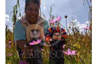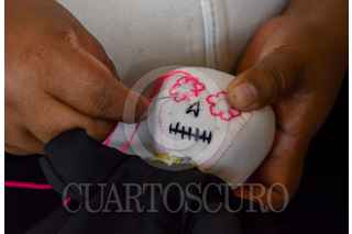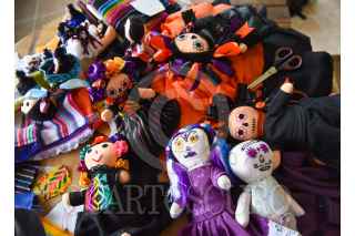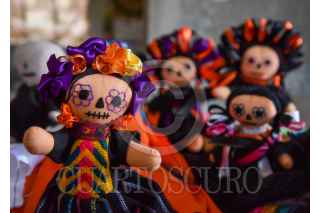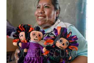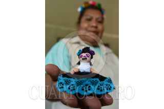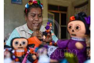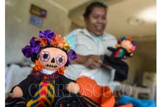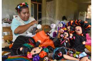 TOLUCA, ESTADO DE MÉXICO, 15OCTUBRE2020.- Margarita Macías originaria de Santiago Mexquititlán en Querétaro y radicada desde hace algunos años en Toluca se dedica a elaborar la tradicional muñeca Ar lë-lë xnutsi, muñecas de trapo Otomí, su mamá le enseñó a elaborarlas y ahora se dedica a darle vida a la tela y listones convirtiéndolas en muñecas de trapo, su cara es bordada a mano, ojos, boca y nariz; para la celebración del Día de muertos confeccionó una muñeca de catrina, con vestidos y listones negros en su mayoría y en algunos otros modelos llega a ponerle algún otro color, mezclando estas dos tradiciones busca que no se pierdan, sus muñecas las vende en ferias artesanales y pide que se aprecie el trabajo que cada artesano realiza. FOTO: CRISANTA ESPINOSA AGUILAR /CUARTOSCURO.COM