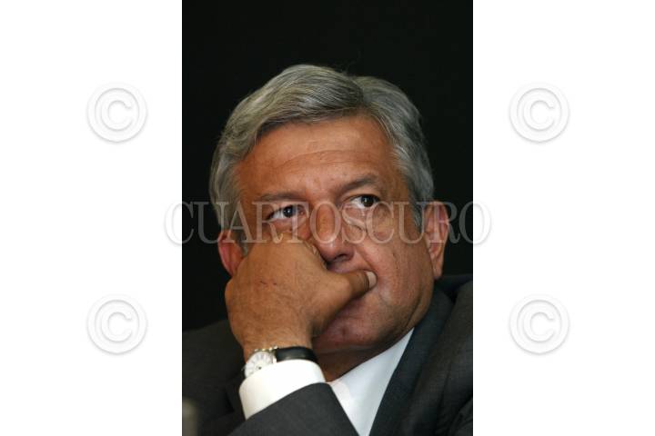MEXICO, D.F., 29MAYO2006.- Andrés Manuel López Obrador, candidato a la presidencia de la República por la coalición por el Bien de Todos, se reunió con cientifícos e intelectuales para escuchar sus propuestas en materia de cultura, en el Centro Libánes. En la imagen el candidaro perredista saluda a un transeunte. FOTO: Moisés Pablo/CUARTOSCURO.COM