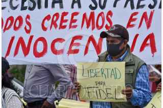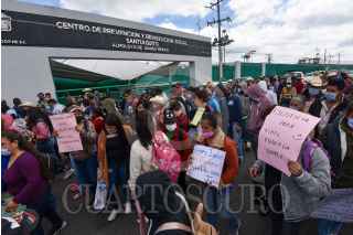 ALMOLOYA DE JUÁREZ, ESTADO DE MÉXICO, 16OCTUBRE2020.- Pobladores de Zacualpan se manifestaron a las afueras del Centro de Prevención y Reinserción Social Santiaguito en Almoloya de Juárez exigiendo la liberación de Fidel “N” alcalde de este municipio quien fue detenido por su presunta participación en el ataque al Fiscal Regional de Ixtapan de la Sal, con pancartas y mantas estuvieron gritando diversas consigas exigiendo la intervención del Gobernador mexiquense y del Presidente de México. FOTO: CRISANTA ESPINOSA AGUILAR /CUARTOSCURO.COM