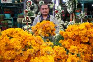 CIUDAD DE MÉXICO, 16OCTUBRE2020. - El emblemático Mercado Jamaica comienza a llenarse de Flor de Cempasuchil y calaveritas de azúcar y papel mache. Locatarios esperan reponerse económicamente durante estas fechas y las decembrinas. FOTO: ANDREA MURCIA /CUARTOSCURO.COM