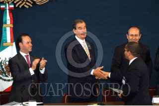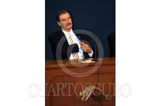 MÉXICO D.F. 29MAYO2006.- Eduardo Buorns, gobernador de Sonora, Carlos Garcia Fernández titular de la Comisión Federal de la Reforma Regulatoria y el presidente, Vicente Fox, durante la decimo segunda reunión del Consejo Federal para la Mejora Regulatoria, en la residencia oficial de los Pinos. FOTO: Guillermo Perea/ CUARTOSCURO.COM