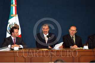 MÉXICO D.F. 29MAYO2006.- Carlos Garcia Fernández titular de la Comisión Federal de la Reforma Regulatoria, el presidente, Vicente Fox y Sergio Garcia de Alba, Secretario de Economia, durante la decimo segunda reunión del Consejo Federal para la Mejora Regulatoria, en la residencia oficial de los Pinos. FOTO: Guillermo Perea/ CUARTOSCURO.COM