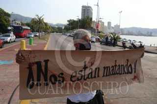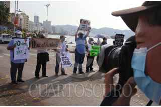 ACAPULCO, GUERRERO, 16OCTUBRE2020.- Reporteros de diferentes medios de comunicación de Acapulco se manifestaron y realizaron un bloqueo intermitente en la avenida Costera, para exigir a los tres ordenes de gobierno garantías para realizar su trabajo de informar y evitar que se sigan agrediendo al gremio. También manifestaron su solidaridad a reporteros amenazados por el crimen organizado en Iguala en días pasados. FOTO: CARLOS ALBERTO CARBAJAL/CUARTOSCURO.COM