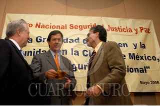 MÉXICO D.F. 29MAYO2006.- Guillermo Válasco, presidente coordinador de APN, Roberto Campa Ciprian, candiadto a la presidencia por el partido Nueva Alianza, y José Antonio Ortega, presidente de ejecutivo de Justicia y PAZ, durante su asistencia al Foro Nacional de Seguridad Jisticia y Paz, donde el candidato acepto el compromiso de seguridad en caso de llegar a la presiedencia FOTO: Guillermo Perea/ CUARTOSCURO.COM