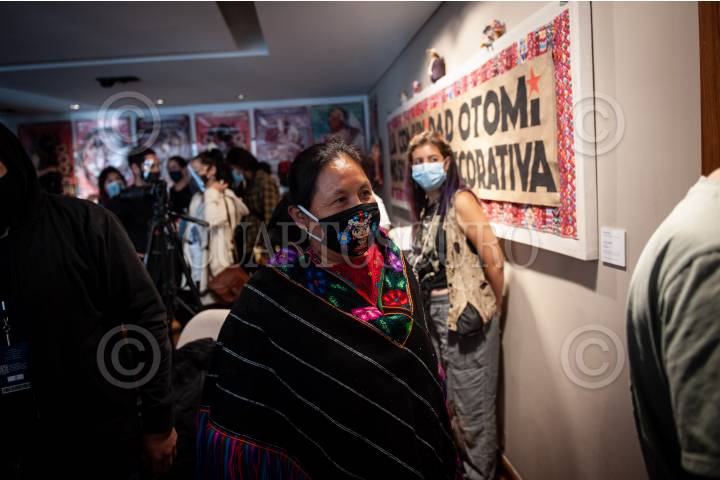 CIUDAD DE MÉXICO, 17OCTUBRE2020.- La vocera del Congreso Nacional Indígena y María de Jesús Patricio Martínez, acompañó esta tarde al grupo de otomíes residentes en la Ciudad de México, y otros tantos provenientes de Santiago Mexquititán, Amealco, Querétaro, que mantienen tomadas las instalaciones del INPI desde el pasado 12 de Octubre. Participaron también en el encuentro la defensora de derechos humanos Lucila Bettina Cruz Velázquez, las concejalas Osbelia Quiroz González y Marisela Mejía, entre otros representantes de procesos de lucha indígena y campesina del país. Durante el encuentro, ademas de las intervenciones e los participantes, se recibió una llamada de apoyo de parte de un padre de los 43 normalistas desaparecidos. FOTO: PEDRO ANZA /CUARTOSCURO.COM