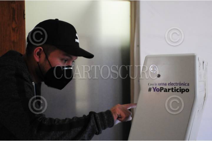 PACHUCA, HIDALGO, 18OCTUBRE2020.- El Instituto Nacional Electoral colocó por primera ocasión las urnas electrónicas en las elecciones que se llevan a cabo en Hidalgo, donde se eligen nuevos presidentes municipales. Estos aparatos buscan agilizar el proceso de votación. FOTO: DANIEL AUGUSTO /CUARTOSCURO.COM