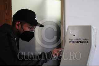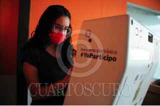PACHUCA, HIDALGO, 18OCTUBRE2020.- El Instituto Nacional Electoral colocó por primera ocasión las urnas electrónicas en las elecciones que se llevan a cabo en Hidalgo, donde se eligen nuevos presidentes municipales. Estos aparatos buscan agilizar el proceso de votación. FOTO: DANIEL AUGUSTO /CUARTOSCURO.COM