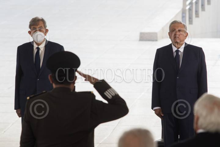CIUDAD DE MÉXICO, 19OCTUBRE2020.- Andrés Manuel López Obrador, Presidente de México, encabezó el aniversario luctuoso del General Lázaro Cárdenas del Río, en el Monumento a la Revolución. Asistió como invitado de honor Cuauhtémoc Cárdenas Solorzano, hijo del ex Presidente de México. FOTO: MOISÉS PABLO/CUARTOSCURO.COM