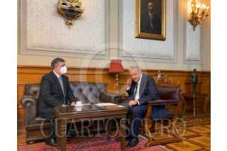 CIUDAD DE MÉXICO, 19OCTUBRE2020.- Andrés Manuel López Obrador, Presidente de México, felicitó vía telefónica a Luis Alberto Arce Cataroca por su triunfo en las elecciones presidenciales de Bolivia. En la llamada lo acompañó el canciller Marcelo Ebrard Casaubón. FOTO: PRESIDENCIA/CUARTOSCURO.COM