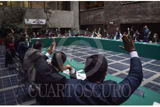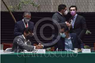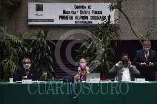 CIUDAD DE MÉXICO, 19OCTUBRE2020.- Marco Antonio Medina; Patricia Terrazas Baca, Carlos Alberto Valenzuela, e Iván Arturo Pérez, integrantes de la Comisión de Hacienda y Crédito Público, durante la primera reunión ordinaria en la que se aprobó el primer dictamen de la Ley de Ingresos, que busca que estados y municipios puedan enfrentar la crisis económica ocasionada por la pandemia por Covid-19. FOTO: MARIO JASSO/CUARTOSCURO.COM