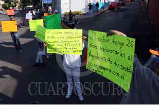 CUERNAVACA, MORELOS,19OCTUBRE2020.- Un centenar de extrabajadores del ayuntamiento de la capital, bloquearon varias calles y dependencias para exigir que sean reinstalados en sus puestos. El gobierno municipal despidió a más de 500 trabajadores por la crisis financiera que atraviesa. Los inconformes piden su reinstalación y que mejor se bajen los sueldos de los altos y medianos funcionarios. FOTO: MARGARITO PÉREZ RETANA /CUARTOSCURO.COM