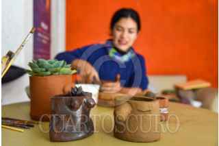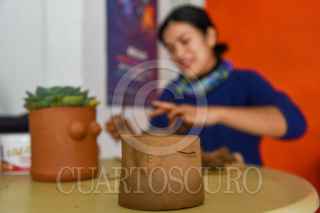 METEPEC, ESTADO DE MÉXICO, 19OCTUBRE2020.- Irma Pichardo se dedica a la elaboración de macetas de distintas formas, sobre todo surrealistas y empezó a experimentar con formas del cuerpo humano, entre ellas macetas de la figura femenina con forma de senos, al gustarle las plantas lo ve como una idea de aceptación, de naturalidad y complemento; logra plasmar la diversidad que existe en la forma de los senos, hasta llegar a crear una maceta reflejando la mastectomía, en el marco del Día Mundial de la Lucha contra el Cáncer de Mama, ella busca crear conciencia a través de sus macetas, ella ve a la mujer como a las plantas, cuando llegan a tener algo que les está dañando se les tiene que quitar para que no las dañe más, se debe de crear conciencia acerca de esta enfermedad. FOTO: CRISANTA ESPINOSA AGUILAR /CUARTOSCURO.COM