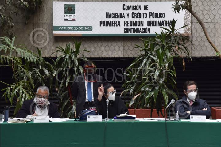 CIUDAD DE MÉXICO, 20OCTUBRE2020.- Marco Antonio Medina; Patricia Terrazas Baca, y Pedro Pablo Treviño, durante la reunión ordinaria en la que con 18 votos a favor y 11 en contra, la Comisión de Hacienda y Crédito Público aprobó en lo general y particular el dictamen de Ley de Ingresos de la Federación 2021. FOTO: MARIO JASSO/CUARTOSCURO.COM