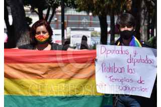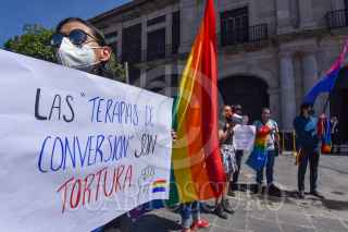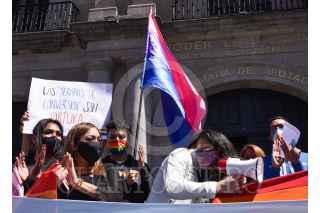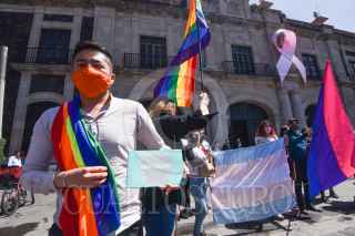 TOLUCA, ESTADO DE MÉXICO, 20OCTUBRE2020.- Integrantes de la comunidad LGBTTTIQ+ acudieron a la Cámara de Diputados local, en donde se aprobó en el pleno la iniciativa para prohibir y sancionar los Esfuerzos para Corregir la Orientación Sexual e Identidad de Género en la entidad. Convirtiéndose en el segundo estado en penalizar estas prácticas hasta con 3 años de prisión. FOTO: CRISANTA ESPINOSA AGUILAR /CUARTOSCURO.COM