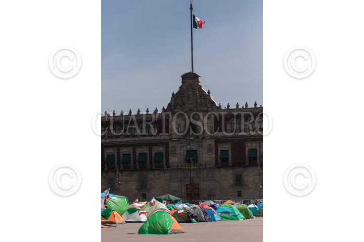 CIUDAD DE MÉXICO. 20OCTUBRE2020.- Continúa el plantón del Frente Nacional Anti AMLO, en la plancha del Zócalo de la Ciudad. Autoridades capitalinas les solicitan a los dirigentes de este movimiento se elojen en las tiendas de campaña, ya que solo 70 personas ocupan este campamento. FOTO: VICTORIA VALTIERRA/CUARTOSCURO.COM