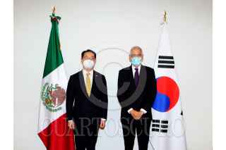 CIUDAD DE MÉXICO, 20OCTUBRE2020.- El subsecretario de Relaciones Exteriores, Julián Ventura Valero, recibió hoy en la Secretaría de Relaciones Exteriores al ministro adjunto para Asuntos Políticos de la República de Corea, Kim Gunn. Se trata de la primera visita oficial coreana a nuestro país, desde el inicio de la pandemia de COVID-19. FOTO: RELACIONES EXTERIORES/CUARTOSCURO.COM