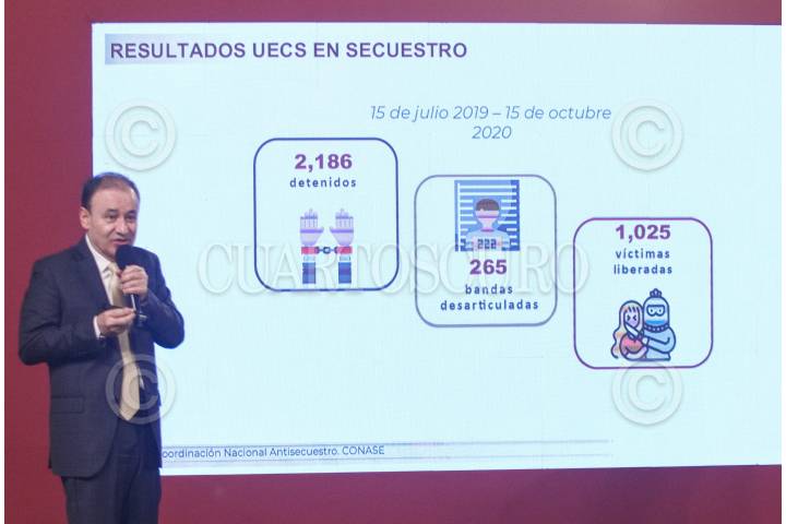 CIUDAD DE MÉXICO, 21OCTUBRE2020.- Andrés Manuel López Obrador, presidente de México, acompañado de Alfonso Durazo, secretario de Seguridad; Luis Cresencio Sandoval González, secretario de la Defensa Nacional; Julio Scherer Ibarra, consejero jurídico de Presidencia; Luis Rodríguez Bucio, titular de la Guardia Nacional; Jorge Nuño Lara, Jefe de la Unidad de Inversiones de la secretaría de Hacienda; Almirante Luis Orozco Inclán, jefe de estado mayor general de la Armada; María Elena Álvarez Buylla, directora general del Consejo Nacional de Ciencia y Tecnológica (CONACYT); Rodolfo Gonzalez Valderrama, director general de Radio, Televisión y Cinematografia (RTC) y José Antonio Álvarez Lima, director de Canal Once, durante la conferencia matutina enfocada al tema de seguridad. Se lleva a cabo en Palacio Nacional. FOTO: ANDREA MURCIA /CUARTOSCURO.COM