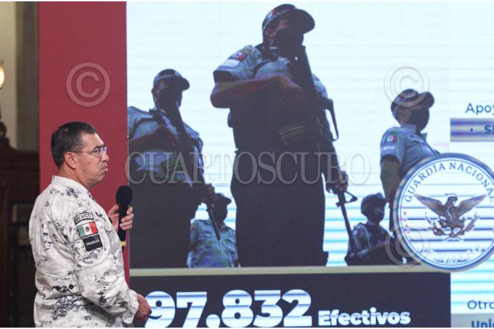 CIUDAD DE MÉXICO, 21OCTUBRE2020.- Andrés Manuel López Obrador, presidente de México, acompañado de Alfonso Durazo, secretario de Seguridad; Luis Cresencio Sandoval González, secretario de la Defensa Nacional; Julio Scherer Ibarra, consejero jurídico de Presidencia; Luis Rodríguez Bucio, titular de la Guardia Nacional; Jorge Nuño Lara, Jefe de la Unidad de Inversiones de la secretaría de Hacienda; Almirante Luis Orozco Inclán, jefe de estado mayor general de la Armada; María Elena Álvarez Buylla, directora general del Consejo Nacional de Ciencia y Tecnológica (CONACYT); Rodolfo Gonzalez Valderrama, director general de Radio, Televisión y Cinematografia (RTC) y José Antonio Álvarez Lima, director de Canal Once, durante la conferencia matutina enfocada al tema de seguridad. Se lleva a cabo en Palacio Nacional. FOTO: ANDREA MURCIA /CUARTOSCURO.COM