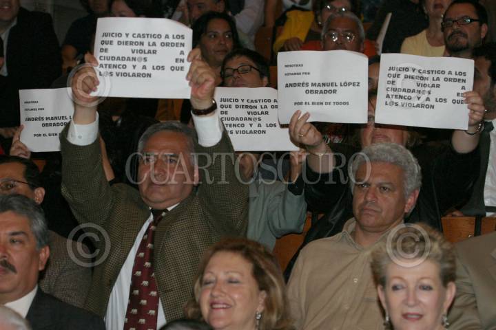MEXICO, D.F. 30MAYO2006.- Andrés Manuel López Obrador candidato de la coalición por el Bien de Todos y Elena Poniatowska al termino del foro Identidad y Cultura. FOTO: Nelly Salas/CUARTOSCURO.COM