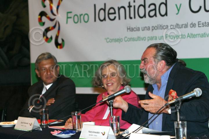 MEXICO, D.F. 30MAYO2006.- Andrés Manuel López Obrador candidato de la coalición por el Bien de Todos y Elena Poniatowska al termino del foro Identidad y Cultura. FOTO: Nelly Salas/CUARTOSCURO.COM