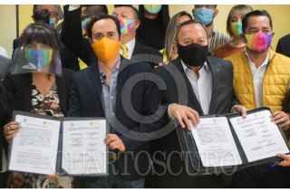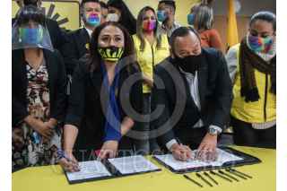 CIUDAD DE MÉXICO, 22OCTUBRE2020.- El dirigente Nacional del PRD; Jesús Zambrano y Jesús Ortega, encabezaron la reunión y firma de Convenio con ientegrantes de la comunidad LGBTTT, quienes podran ser candidatos en las proximas elecciones, por parte del este instituto político. Este evento tuvo lugar en la sede Nacional del Partido del Sol Azteca. FOTO: VICTORIA VALTIERRA/CUARTOSCURO.COM