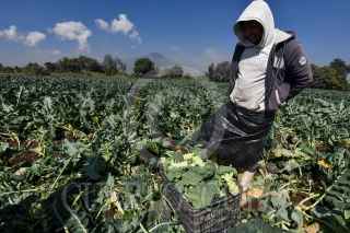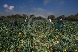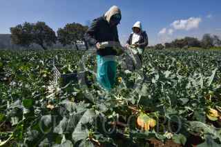 TENANGO DEL VALLE, ESTADO DE MÉXICO, 22OCTUBRE2020.- Algunos productores de San Francisco Putla en Tenango del Valle han optado por cambiar la siembra de las flores por verduras, ante la incertidumbre de si podrán comercializar las flores como cada año lo hacen para el Día de Muertos, por la pandemia por COVID-19, la mayoría de campos se pueden ver con cosechas de col, brócoli, cilantro, lechugas y algunos otros vegetales, que son más fáciles de vender, de acuerdo a los productores, quienes desde muy temprana hora acuden a los campos a cosechar las verduras y poder llevarlas para su venta. FOTO: CRISANTA ESPINOSA AGUILAR /CUARTOSCURO.COM