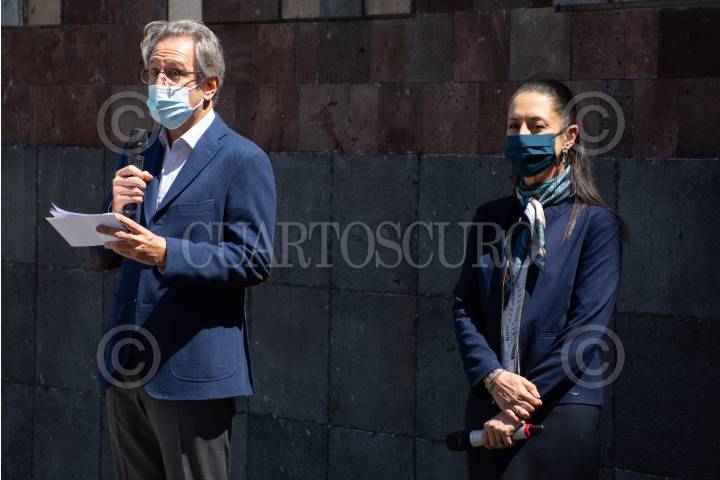 CIUDAD DE MÉXICO, 22OCTUBRE2020.- La jefa de gobierno, Claudia Sheinbaum, en compañía de Antonio del Valle Perochena, presidente de Grupo Kaluz y de Antonio del Valle Ruiz, presidente honorario vitalicio de Kaluz y director del museo, además de la presencia del escultor y pintor, Vicente Rojo, inauguraron el nuevo Museo Kaluz, el cual fue acondicionado y remodelado para que a partir de esta semana comience a exhibir obras de arte mexicanas, anteriormente este recinto era un hotel, pero fue adquirido por Fundación Kaluz, que también invirtió en la remodelación de Av. Hidalgo.FOTO: DANIEL AUGUSTO/CUARTOSCURO.COM