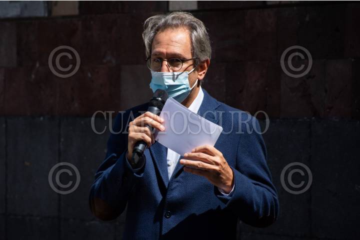CIUDAD DE MÉXICO, 22OCTUBRE2020.- La jefa de gobierno, Claudia Sheinbaum, en compañía de Antonio del Valle Perochena, presidente de Grupo Kaluz y de Antonio del Valle Ruiz, presidente honorario vitalicio de Kaluz y director del museo, además de la presencia del escultor y pintor, Vicente Rojo, inauguraron el nuevo Museo Kaluz, el cual fue acondicionado y remodelado para que a partir de esta semana comience a exhibir obras de arte mexicanas, anteriormente este recinto era un hotel, pero fue adquirido por Fundación Kaluz, que también invirtió en la remodelación de Av. Hidalgo.FOTO: DANIEL AUGUSTO/CUARTOSCURO.COM