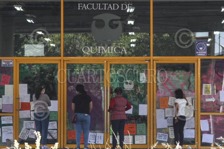 CIUDAD DE MÉXICO, 22OCTUBRE2020.- Diversos Colectivos feministas mantienen tomadas las instalaciones de la Facultad de Química de la Universidad Autónoma de México, esto luego de que diversas plantillas de alumnos de la facultad denunciaran a dos profesores por comentarios sexistas y misóginos, así mismo buscan un alto a la violencia de género en la máxima casas de estudios. Las integrantes se comprometieron a no dañar las inmediaciones de dicha escuela, así como entablar una mesa de diálogo con autoridades correspondientes. FOTO: ROGELIO MORALES /CUARTOSCURO.COM