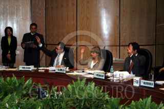 MÈXICO D,F. 30MAYO2006. Los consejeros del IFEDF Carla Astrid Humprey Jordan, Fernando Josè Dìaz Naranjo y Nestor Vargas Solano votan por la no aprovaciòn de la publicaciòn de seudònimos en las voletas electorales delegacionales. FOTO: Paola Hidalgo/CUARTOSCURO.