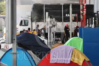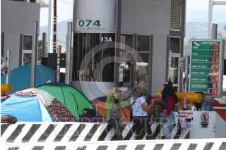 CIUDAD DE MÉXICO, 20OCTUBRE2020.- Por cerca de una semana diferentes colectivos encabezados por el Movimiento Zapata Vive, han mantenido tomada la caseta de cobro México-Cuernavaca, los manifestantes exigen la liberación inmediata de su compañera Kenia Hernández, así como de presos políticos del estado de Guerrero. FOTO: ROGELIO MORALES /CUARTOSCURO.COM