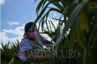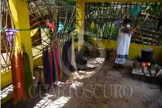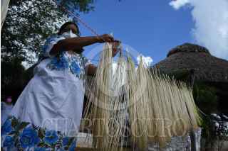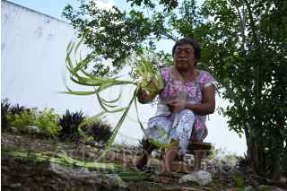 CAMPECHE, MÉXICO 22OCTUBRE2020.- Artesanas tejedoras del Jipijapa de la Villa de Bécal del municipio de Calkiní en el Estado de Campeche, regresaron a las cuevas ahora con cubre bocas tras varios meses sin poder realizar sus actividades debido a la pandemia que las golpeo al no poder comercializar sus artesanías. Hoy día mediante la reactivación económica de forma paulatina y la apertura del turismo en el estado les da un aliento para poder vender sus productos y obtener ingresos. El trabajo en equipo de las mujeres artesanas se plasma desde la cultivación de las palmas enanas llamadas Jipijapa, las cuales se abren al ser golpeadas para después irle sacando todas las hebras para ser secadas por el sol. Las palmas son teñidas con hojas naturales para darles color para después pasar por las manos mágicas de las tejedoras quienes se introducen en las cuevas bajo tierra las cuales se mantienen frescas lo que ayuda a la manipulación de las fibras de las palmas. Las jornadas son horas y días para procesar las diferentes artesanías y sombreros. Al final los sombreros son colocados en una prensa de fierro donde el calor del fuego les da el acabado final. FOTO: MICHAEL BALAM/ CUARTOSCURO.COM